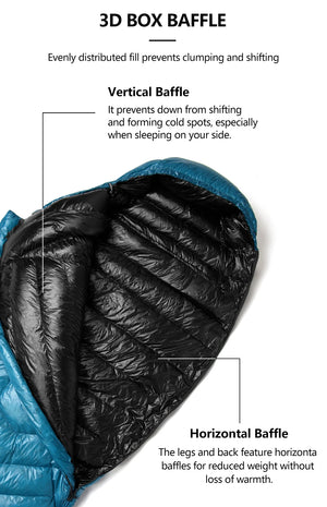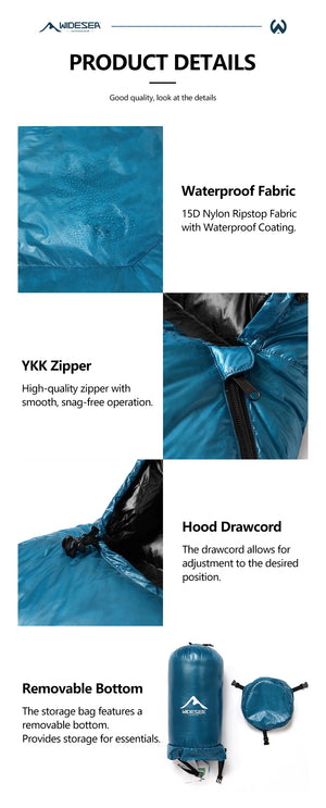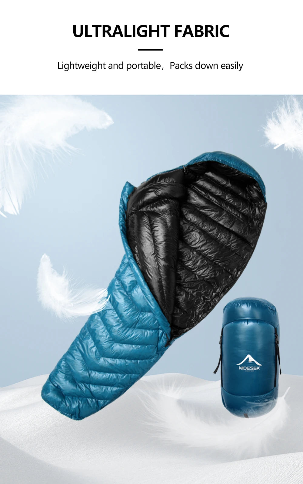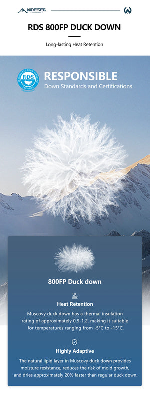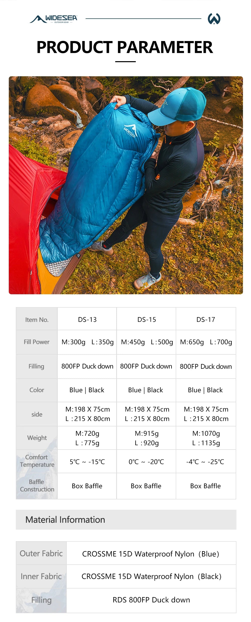 Sac de couchage ultralight en duvet de canard 800 FP & nylon imperméable RDS "Widesea - DS Series"