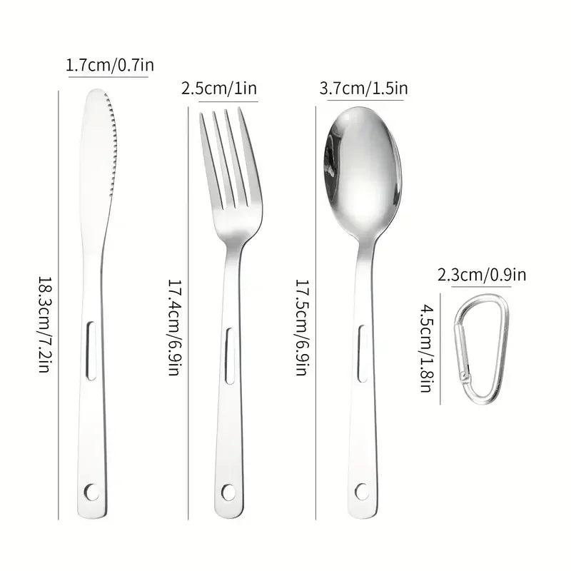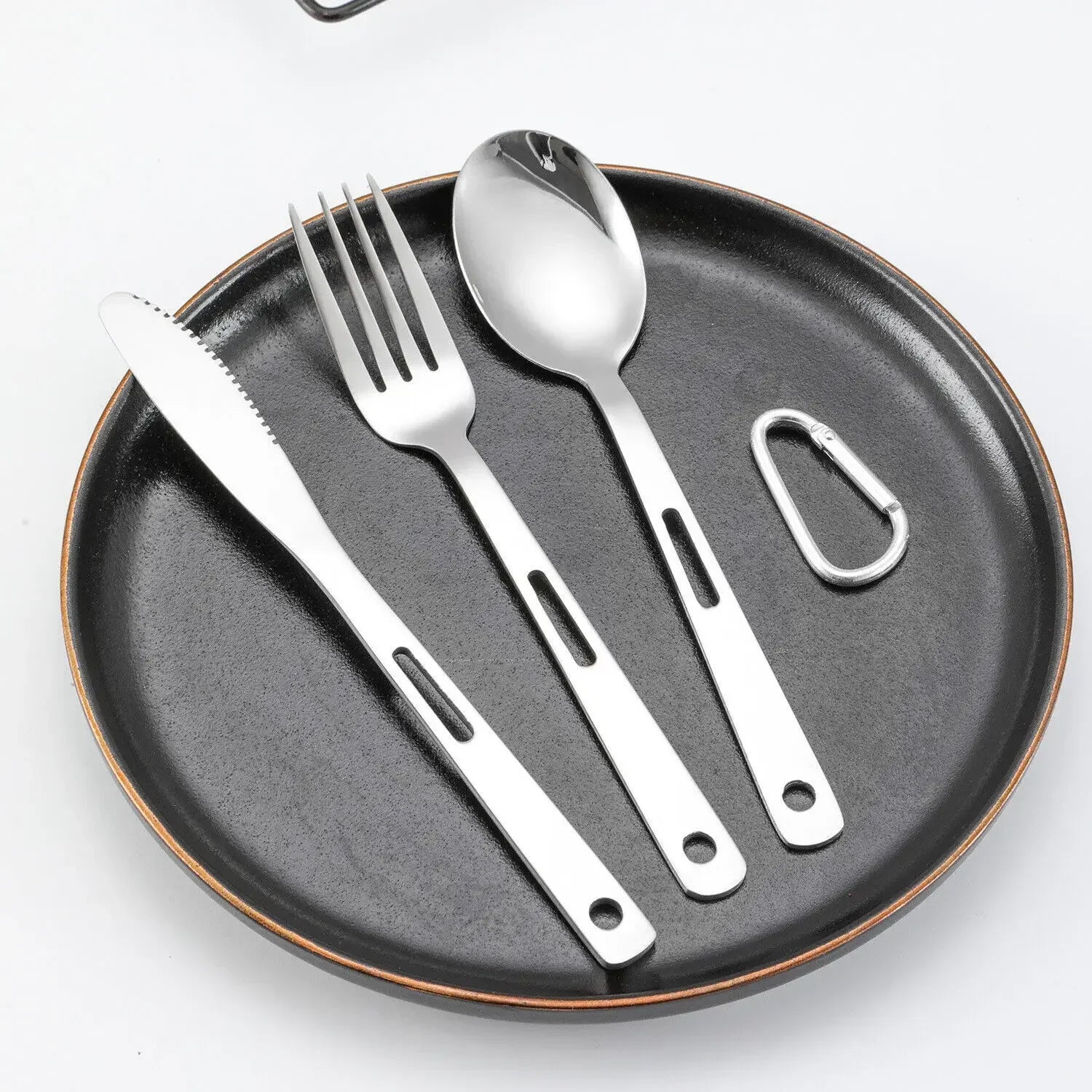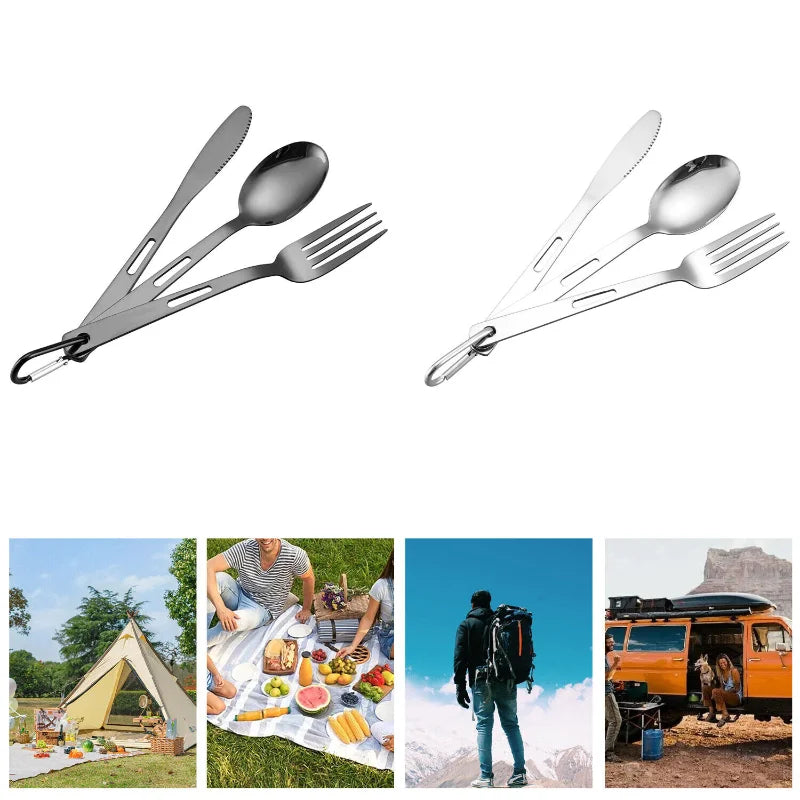 Ensemble de 3 couverts portables en acier inoxydable "Shinetrip - Kitchen portable set"