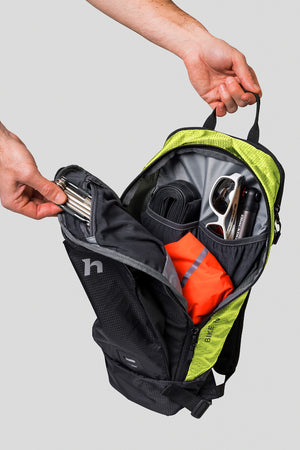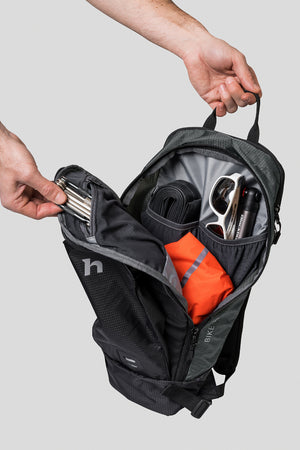 Bike 10 est un sac à dos de cyclisme léger qui est un compagnon idéal pour le cyclisme et les petites randonnées. Il garde vos affaires bien organisées grâce à ses deux compartiments. Le panneau dorsal Air Vent est de forme anatomique et garantit que votre dos reste sec. Les bretelles rembourrées sont confortables et bien ajustées. Le sac à dos est également doté d'une sangle de sternum et d'une ceinture de hanches amovible. A l'intérieur, il y a une pochette pour pack d'hydratation avec une sortie pour tuyau d'arrosage, y compris un pack d'hydratation de 1 L. Le Bike 10 est équipé d'un point de fixation pour lampe LED et d'une poche pour casque à l'avant.