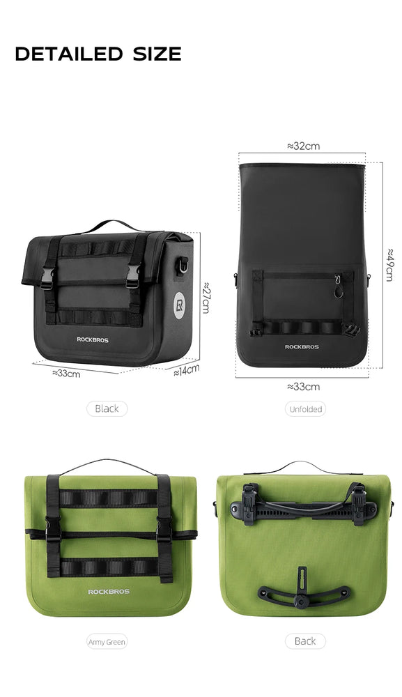 Sacoche de vélo multifonctionnelle 100% imperméable sur porte-bagage 15L "ROCKBROS - AS127"