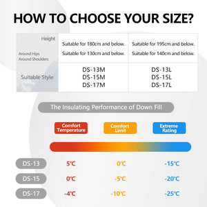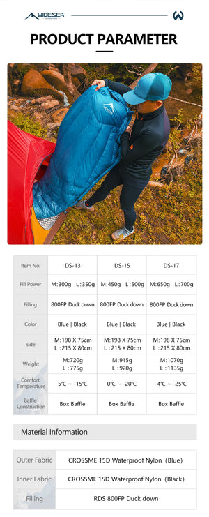 Sac de couchage ultralight en duvet de canard 800 FP & nylon imperméable RDS "Widesea - DS Series"