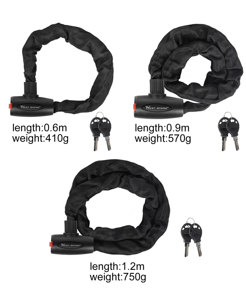 Antivol à chaîne en alliage d'acier dur pour vélo électrique, VTC et VTT "WEST BIKING - Chain Lock 00A"