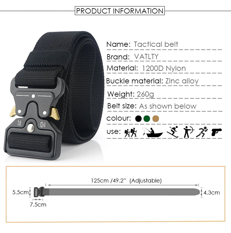 Ceinture tactique en nylon 1200D avec boucle à dégagement rapide 125cm "Vatlty - VT44"