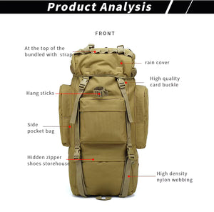 Sac à dos tactique avec housse de pluie 100L résistant 900D "L&Q Army - BL023"