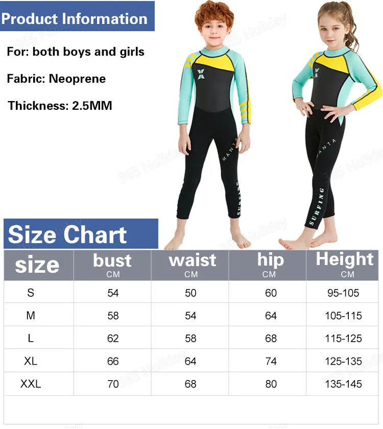 Combinaison de plongée intégrale en néoprène 2,5mm pour enfants "DIVE & SAIL - DS-M150556K"