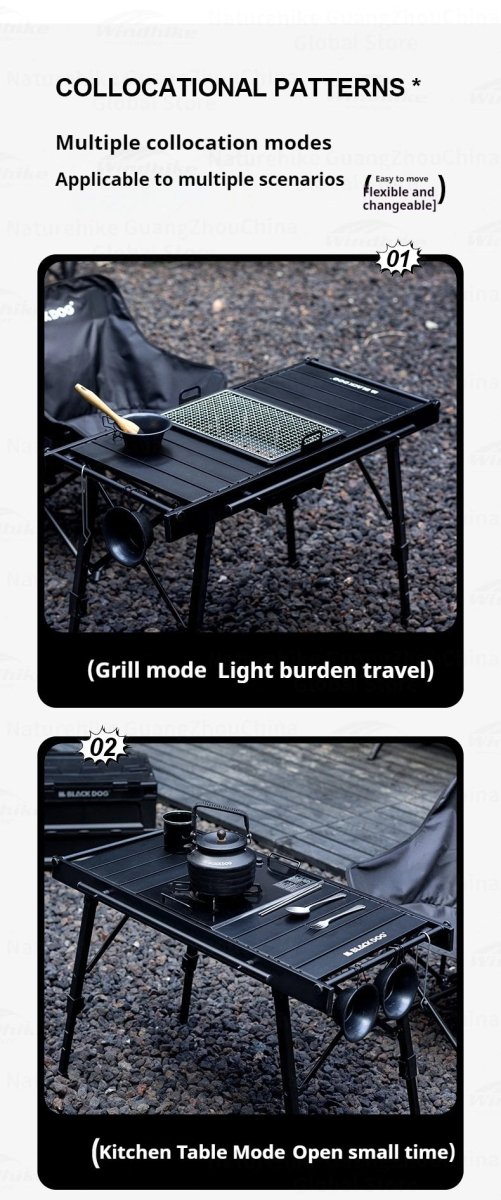 Table de camping IGT pliante en alliage d'aluminium à hauteur réglable pour le camping, van-life "Naturehike Blackdog IGT"
