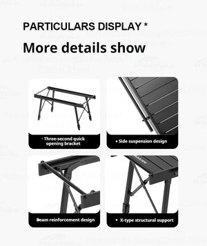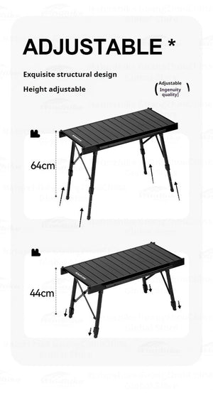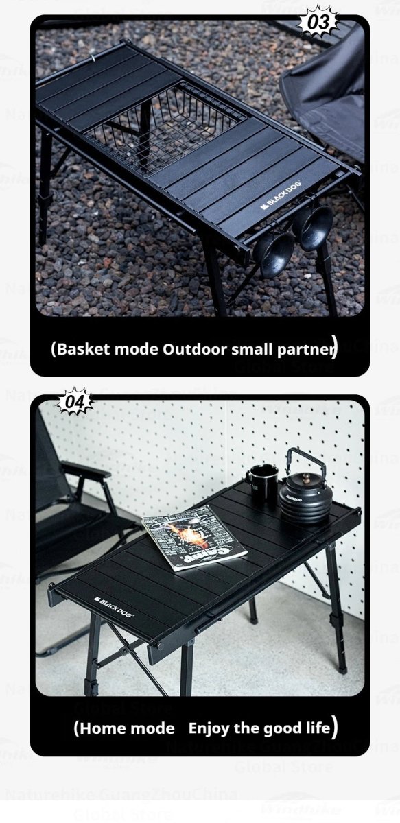 Profitez du confort ultime en camping avec la table de camping IGT pliante en alliage d'aluminium de Naturehike Blackdog. Avec sa hauteur réglable, elle s'adapte à tous les besoins et sa construction robuste en fait un compagnon fiable pour toutes vos aventures en plein air. Simplifiez votre van-life avec cette table polyvalente et pratique.