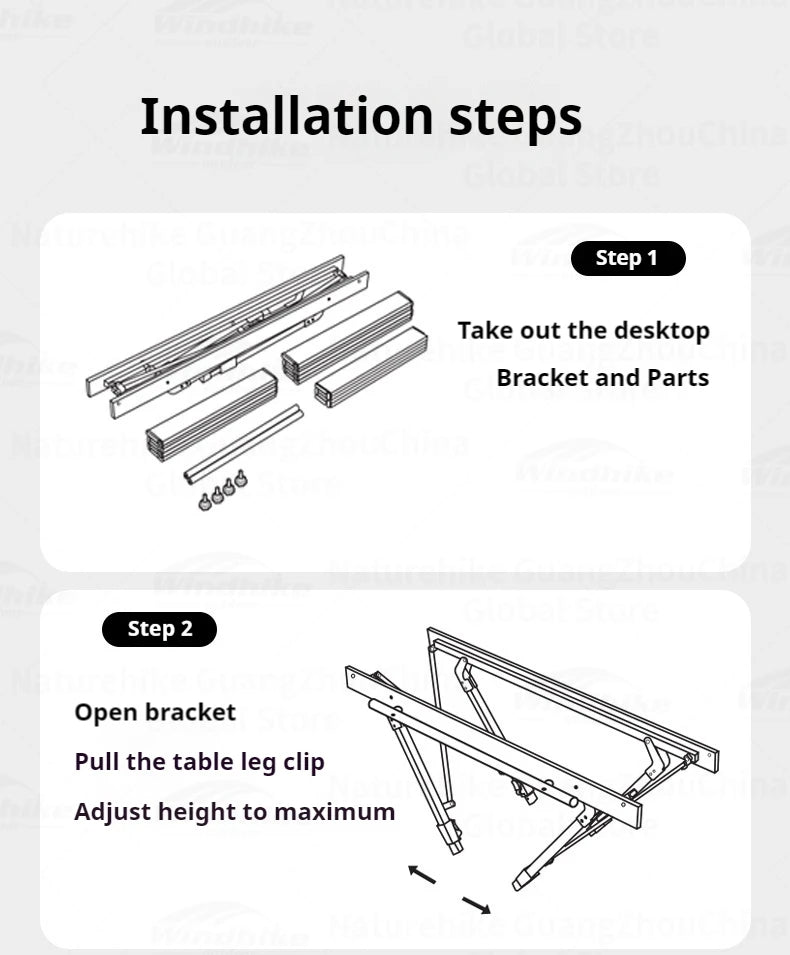 Table de camping IGT pliante en alliage d'aluminium à hauteur réglable pour le camping, van - life "Naturehike Blackdog IGT" - Planète Rando
