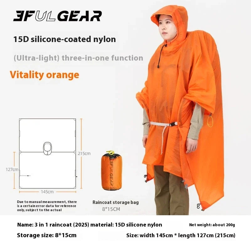 Poncho / tarp imperméable à fermeture éclair ultra-léger "3F UL GEAR - Rain poncho"