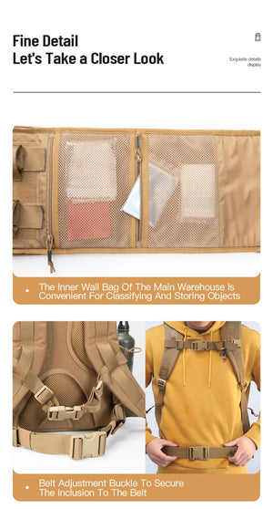 Sac à dos tactique haute performance conçu pour les professionnels et passionnés de terrain. Le système Molle intégré permet une personnalisation complète avec des modules additionnels. Compartiments spécialisés pour équipements médicaux d'urgence et matériel tactique. Matériaux robustes et résistants à l'usure garantissent une durabilité exceptionnelle. Bretelles ergonomiques et ceinture ventrale assurent un confort optimal lors de déplacements prolongés. Capacité généreuse pour transporter l'ensemble de votre équipement. Solution polyvalente adaptée aux missions exigeantes, interventions d'urgence et expéditions en milieu hostile.