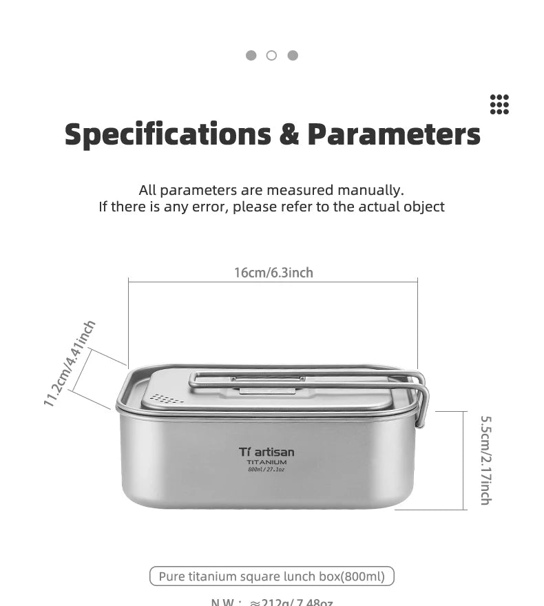 Boîte à repas / lunch en titane, résistante et légère 800ML / 1200ML à partir de 175g "Tiartisan - Ta5508"