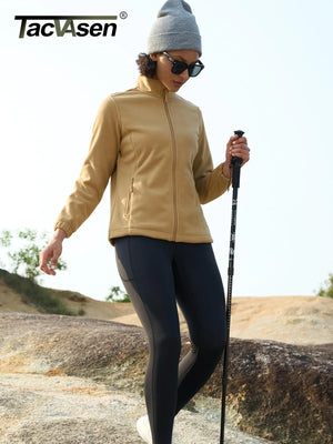 Veste softshell TACVASEN TJ602 conçue pour les femmes actives en montagne et randonnée. Combine une membrane softshell respirante avec doublure polaire thermique pour une protection optimale contre le vent et l'humidité. Quatre poches zippées sécurisées offrent un rangement pratique pour vos essentiels. Coupe ajustée et légère, idéale pour les couches intermédiaires ou le port autonome. Matière durable et facile d'entretien pour des années d'aventures.