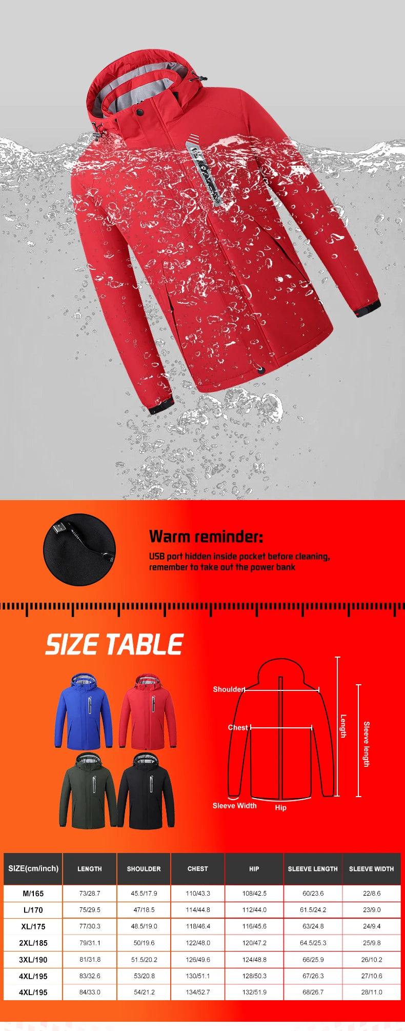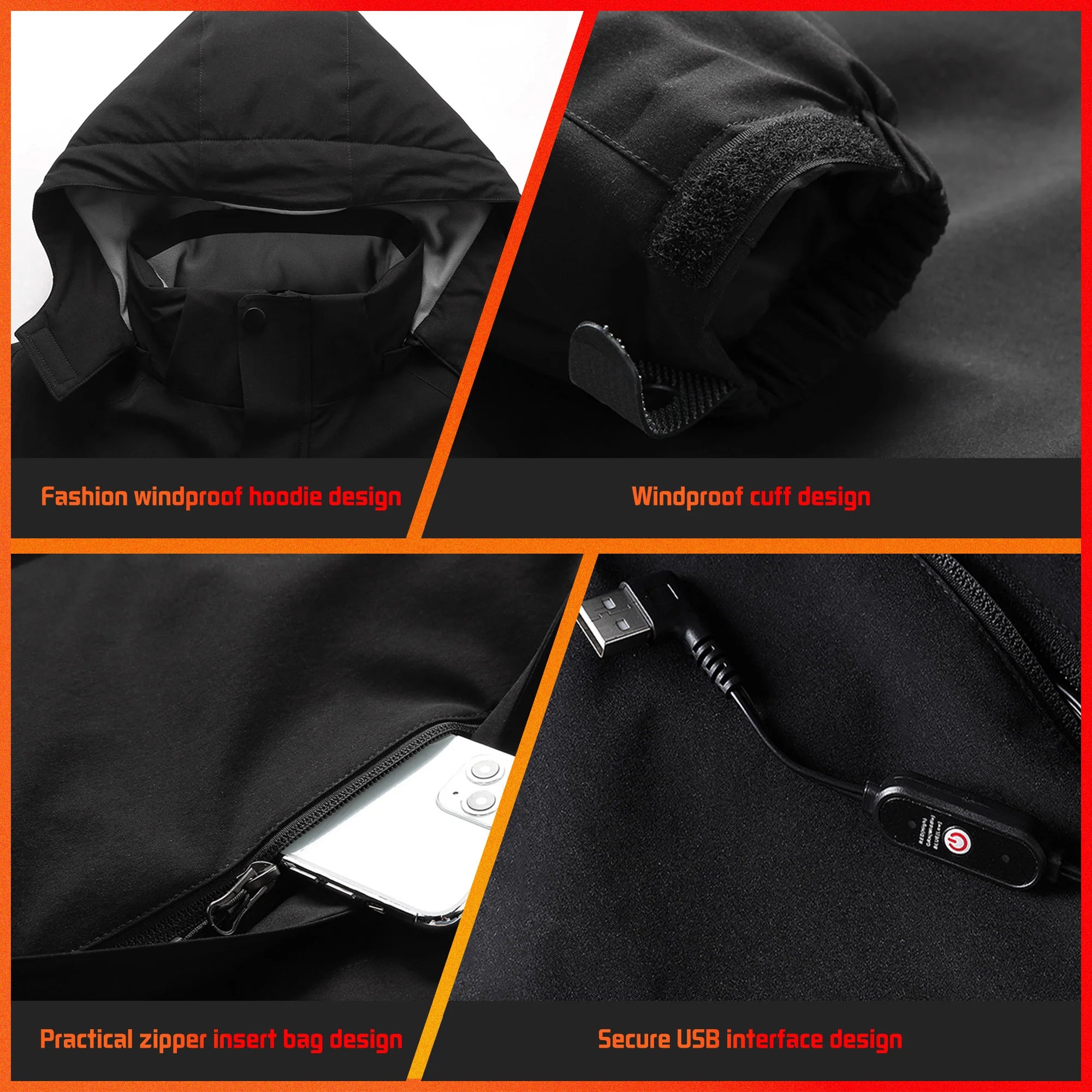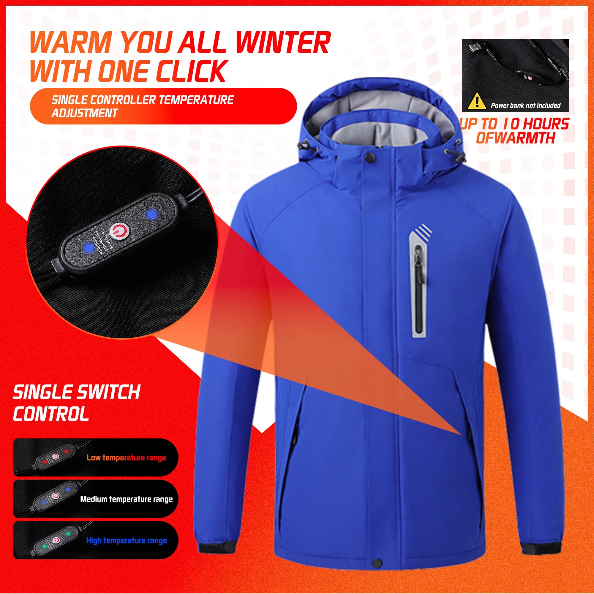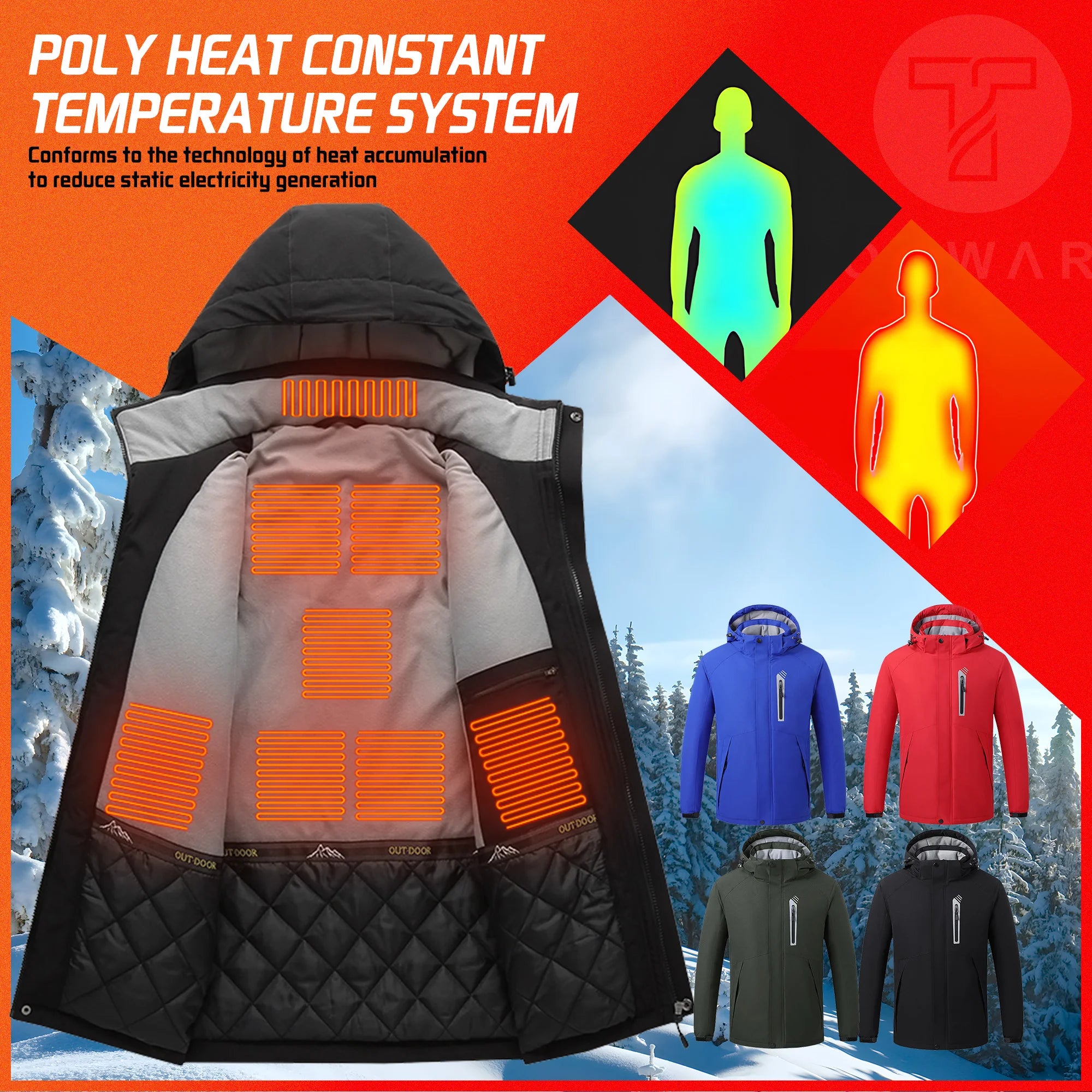 Veste chauffante imperméable unisexe avec 8 zones chaudes "TODWARM - Smart Heat Jacket"