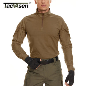 Chemise de combat / T-shirt tactique à manches longues,fermeture éclair 1/4 en coton et polyester "TACVASEN - TS001"