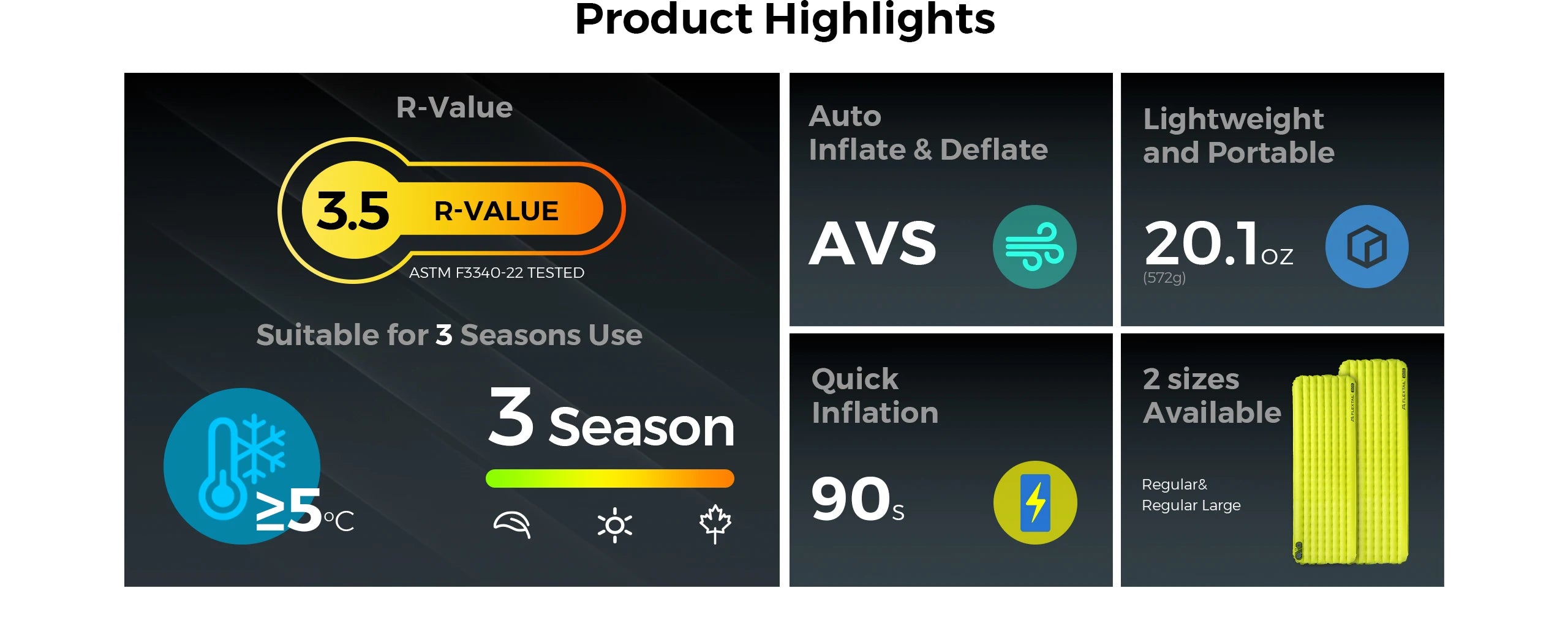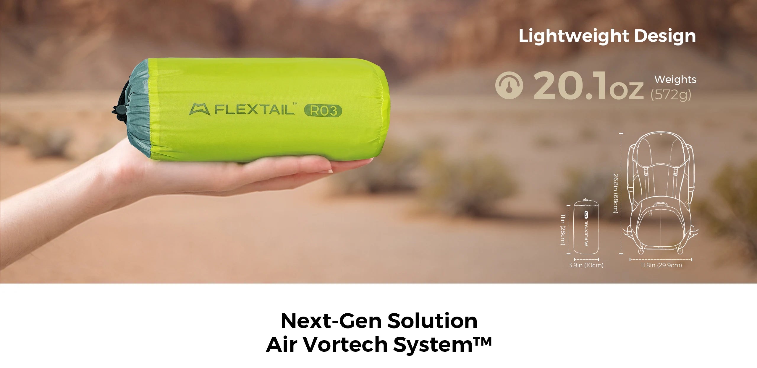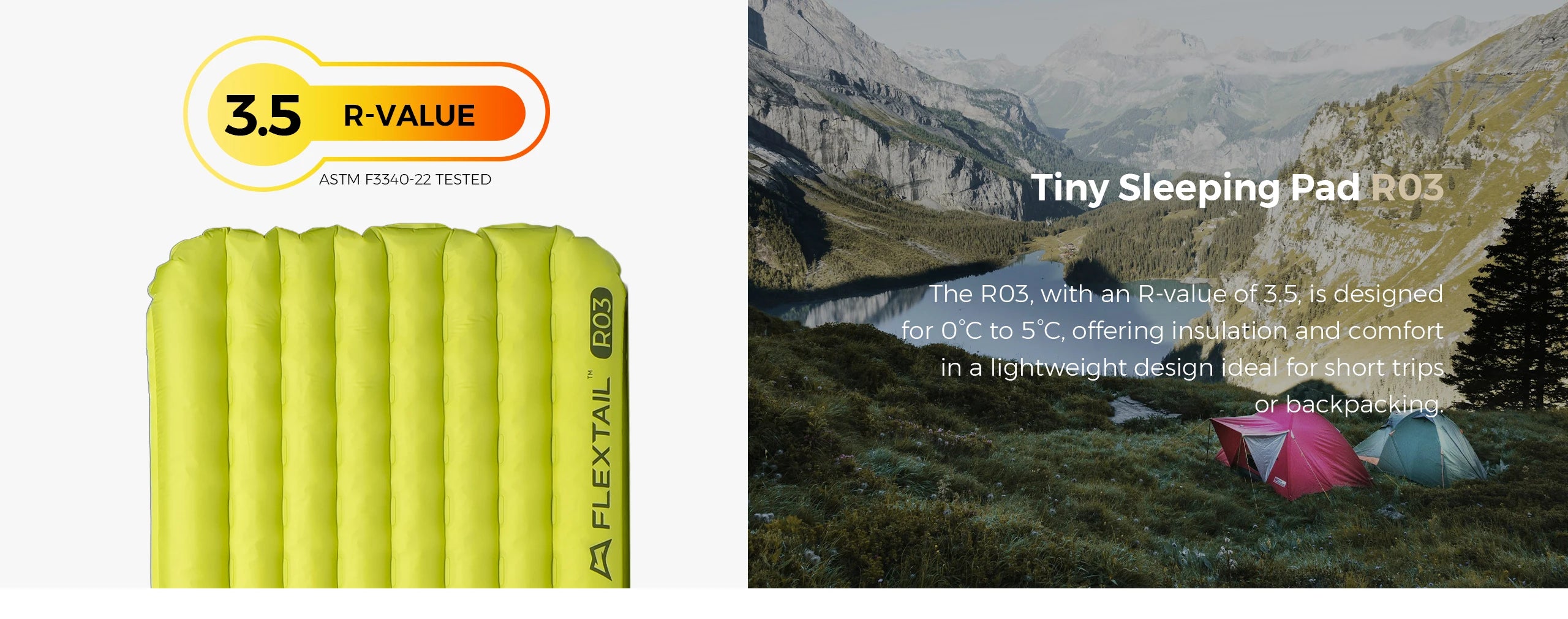 Matelas gonflable ultraléger avec pompe intégrée R-Value 3.5 confort 5°C "FLEXTAILGEAR - TINY Sleeping pad R03"