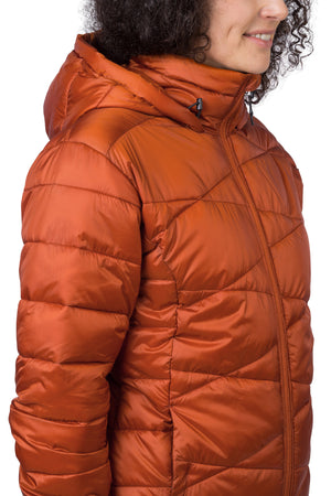 Chaqueta deportiva aislante con un interesante efecto de costura. El material exterior Airlite AC, ultraligero, duradero y transpirable, tiene un acabado repelente al agua . El aislamiento interior Dupont Sorona Aura es ligero, transpirable, fácil de moldear y reduce la huella ecológica gracias al uso de un 37 % de ingredientes vegetales renovables . La tecnología especial de relleno HL TECH Downlike garantiza que el aislamiento se mantenga en su sitio en las habitaciones y que Hannah Betlis se sienta como una auténtica chaqueta de plumas. Sus ventajas son su alto poder de relleno y sus excelentes propiedades termorreguladoras , un cuello aislante con capucha con cordón , bolsillos principales con cremallera , mangas y dobladillo elásticos. La chaqueta incluye una mochila y es ideal para una amplia gama de actividades, desde senderismo ligero y viajes hasta actividades al aire libre y el día a día.