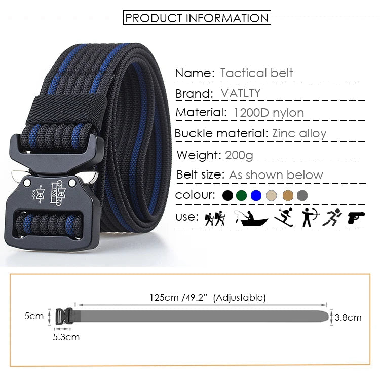 Ceinture tactique en nylon 1200D avec boucle à dégagement rapide "VATLTY - VB101"