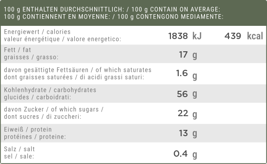*Valeurs de référence nutritionnelles (VNR) pour l'apport journalier selon le règlement sur l'information alimentaire par paquet de 120g
