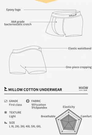 Lot de 3 boxer en coton pour homme, sous-vêtements respirants, boxers antibactériens au graphène "MiiOW - MW820-3P"