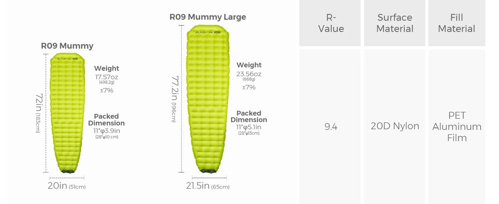 Inicio Matelas gonflable ultraléger avec pompe intégrée R-Value 9.4 confort -35°C "FLEXTAILGEAR - TINY Sleeping pad R09"