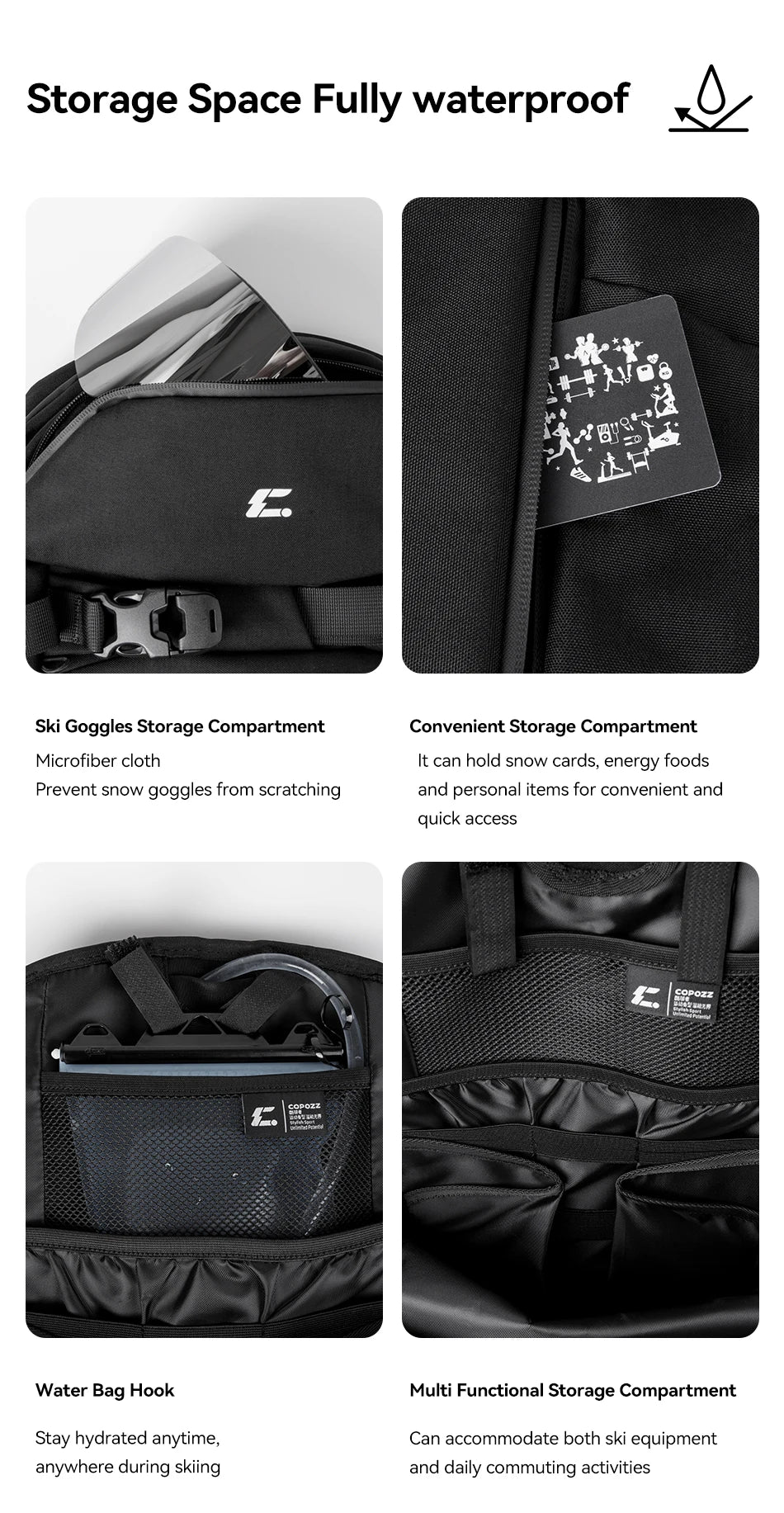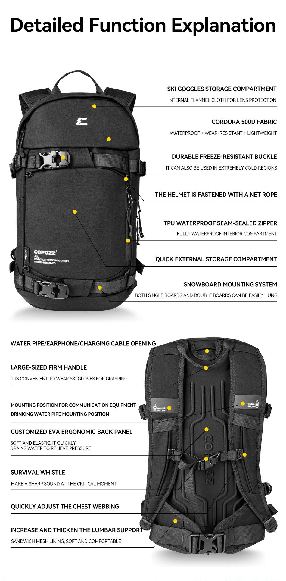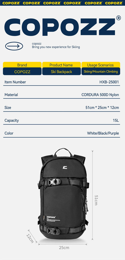 Sac à dos de ski multifonctionnel avec technologie Cordura & Snow Field Armor 15L "COPOZZ - HXB-250001"