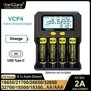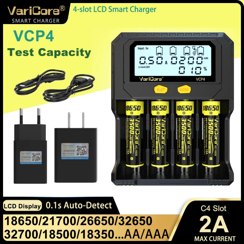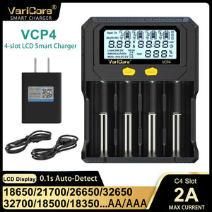 Accueil Chargeur intelligent avec écran LCD pour batteries Li-ion 3,7V / LiFePO4 3,2V / Ni-MH 1,2V "VariCore VCR4/P4"