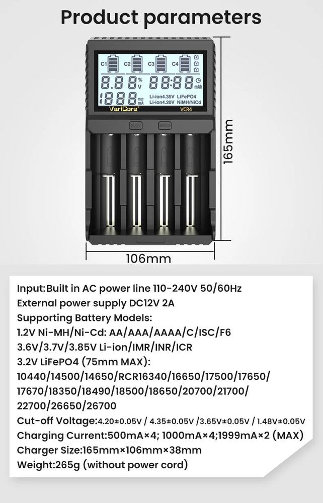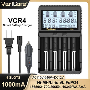 Chargeur intelligent avec écran LCD pour batteries Li-ion 3,7V / LiFePO4 3,2V / Ni-MH 1,2V "VariCore VCR4/P4"