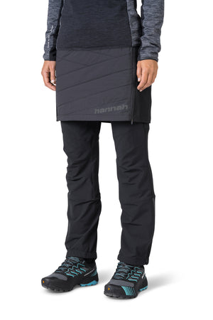La Jupe de randonnée / marche active isolée Hannah Ally Pro est basée sur notre modèle populaire, Hannah Ally, et complète parfaitement la collection de ski de randonnée hivernale. La combinaison des matériaux Airlite Windproof et AFT Double Weave offre une protection contre le vent et la pluie, une résistance à l'abrasion et une dissipation rapide de la chaleur pour vous garder au sec. La jupe est remplie d'une isolation Primaloft Silver Active de haute qualité, qui vous garde au chaud même dans des conditions humides, et elle est dotée d'un traitement écologique sans PFC. Les panneaux extensibles sur les côtés garantissent une liberté de mouvement. Pour l'enfiler facilement, la jupe est équipée d'une fermeture éclair sur toute la longueur. Lors des promenades en montée, vous apprécierez la petite fente zippée sur la cuisse droite.