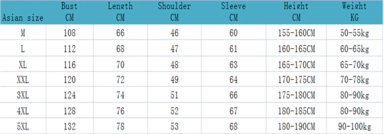 M, L, XL, 2XL, 3XL, 4XL, 5XL