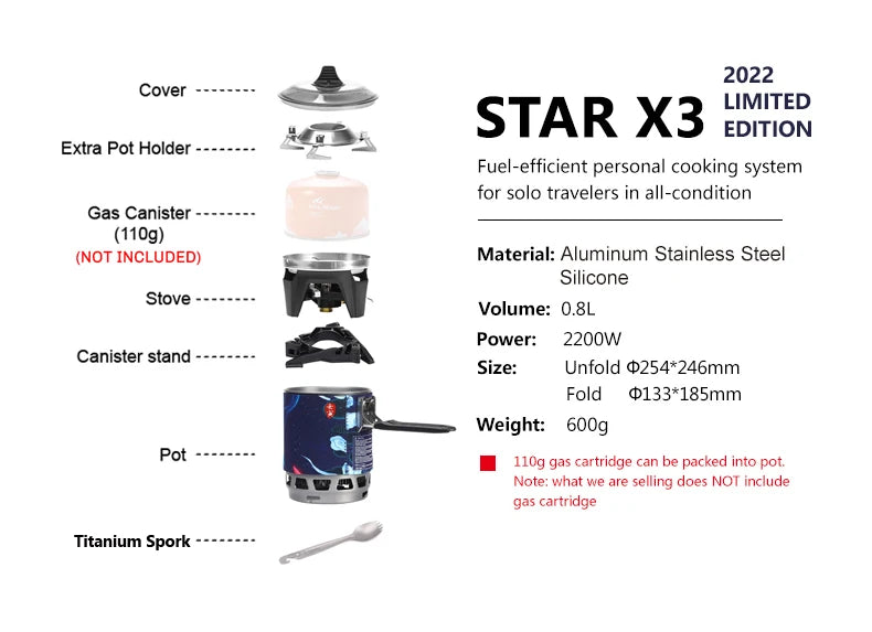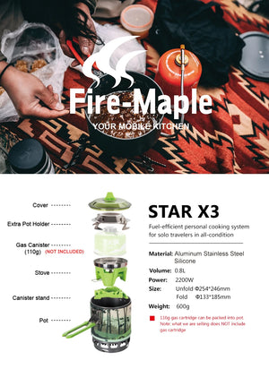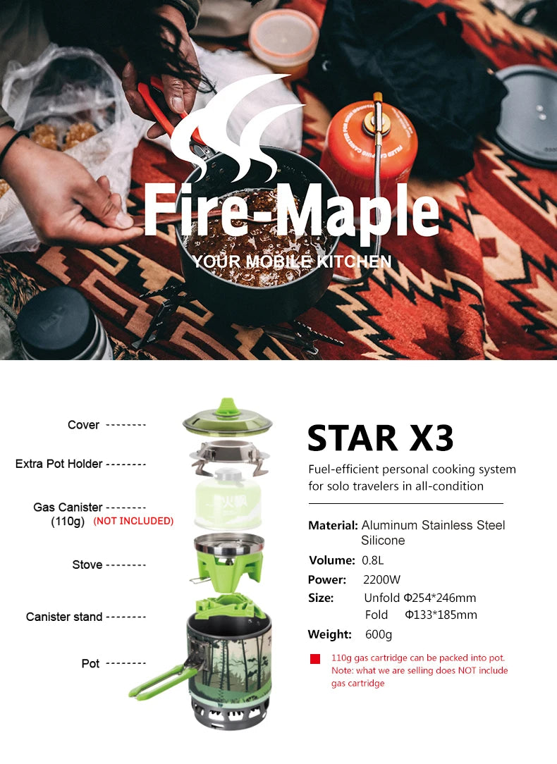 Réchaud 0,8L à gaz de camping 2200W avec allumage piézoélectrique 600g "Fire-Maple - FMS-X3"