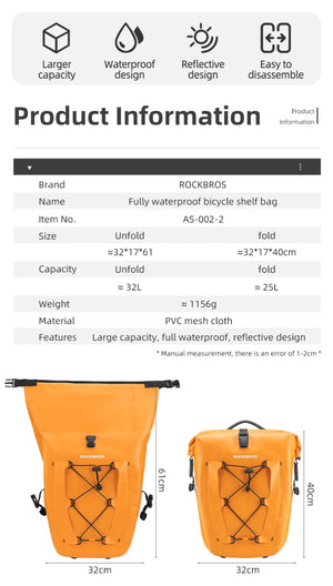Sacoche de vélo 100% imperméable sur porte-bagages arrière avec poche filet 25L "Rockbros - AS002-2"