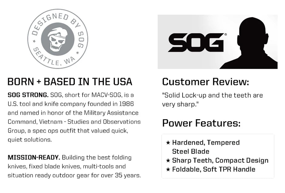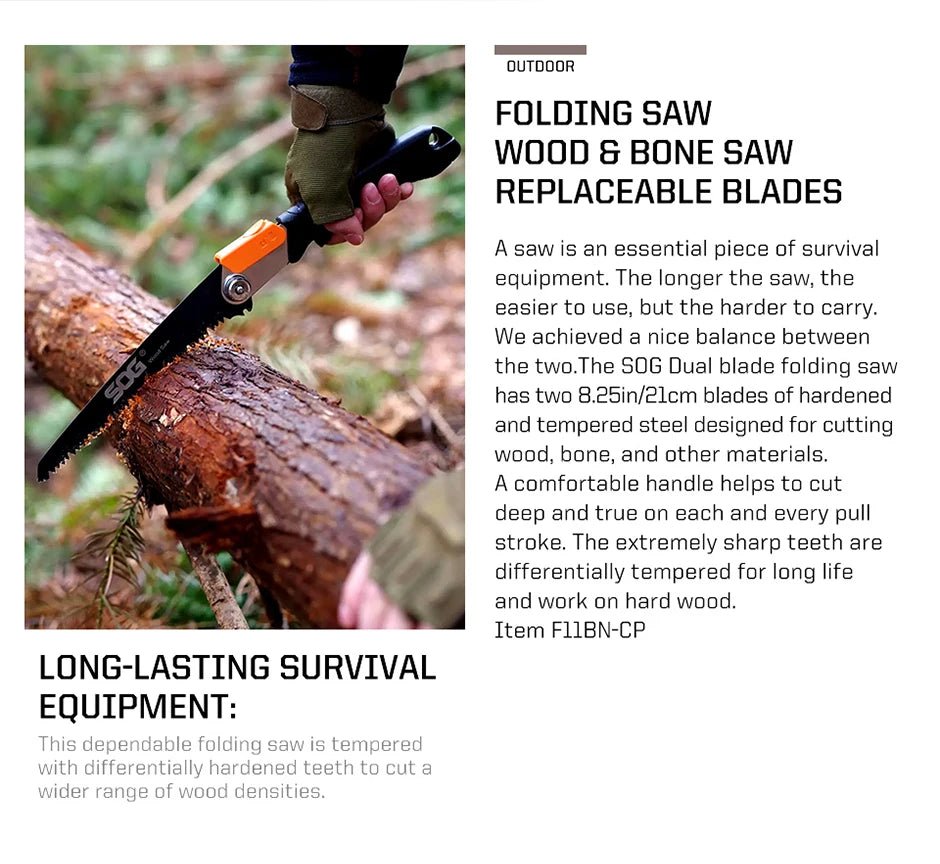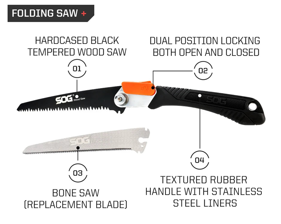 Scie pliante pour la chasse et le bushcraft 265g "SOG - Wood & Bone saw"