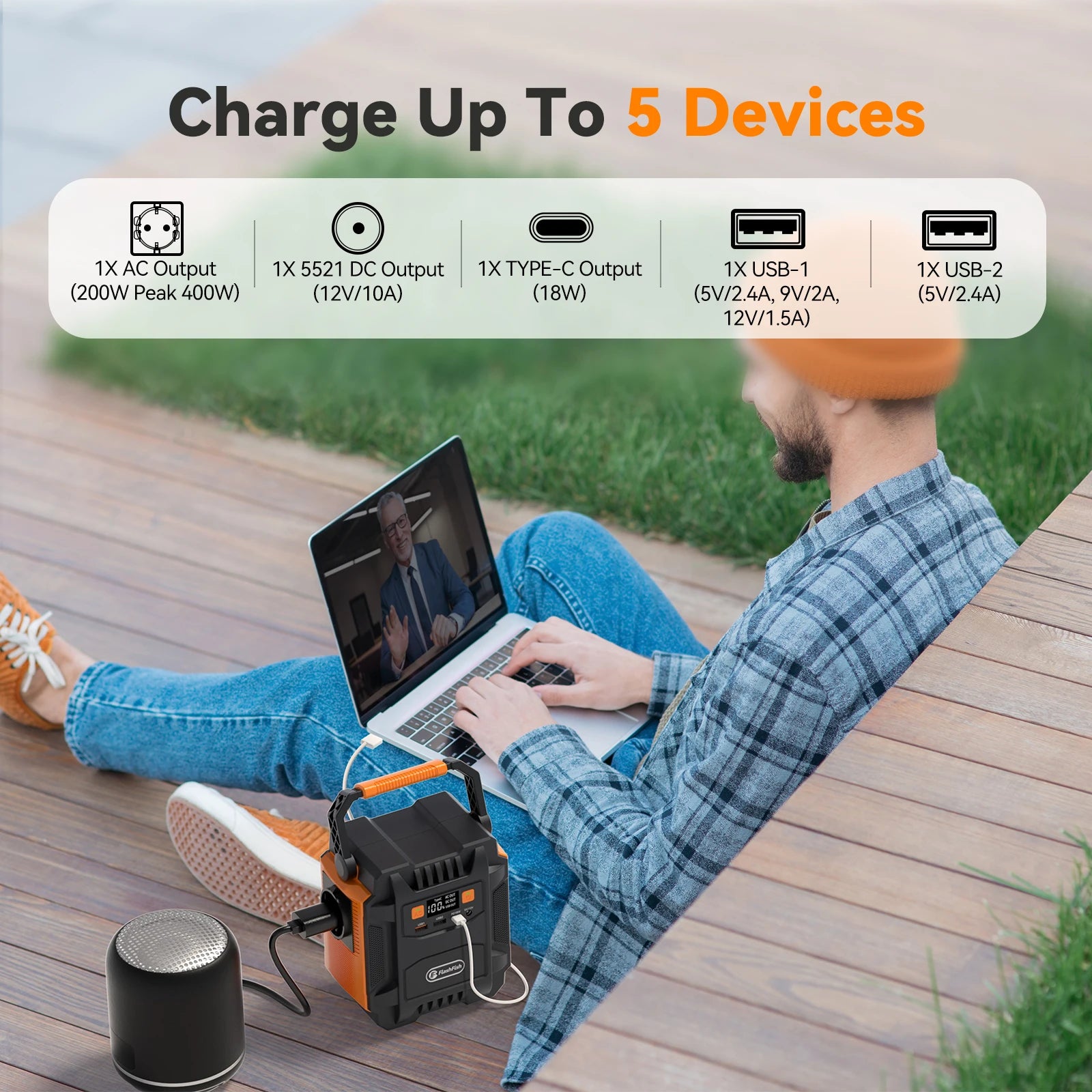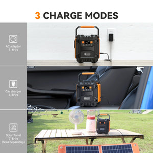Contenu de l'emballage : 1 générateur solaire portable, 1 adaptateur secteur, 1 adaptateur allume-cigare, 1 chargeur de voiture, 1 manuel d'utilisation