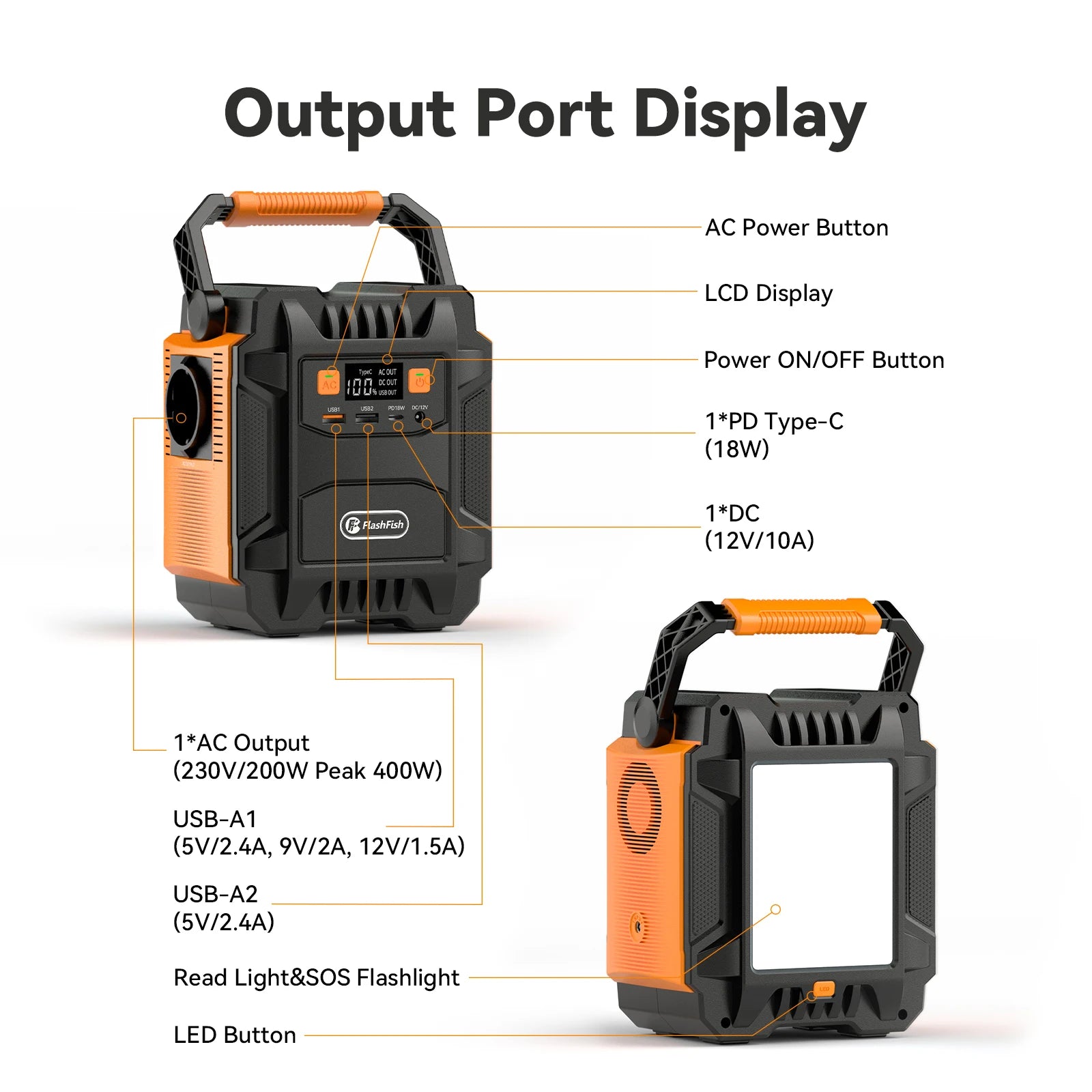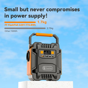 Station d'alimentation / générateur solaire avec batterie 172,8 Wh, prises 230V et LED "FF Flashfish - A201"