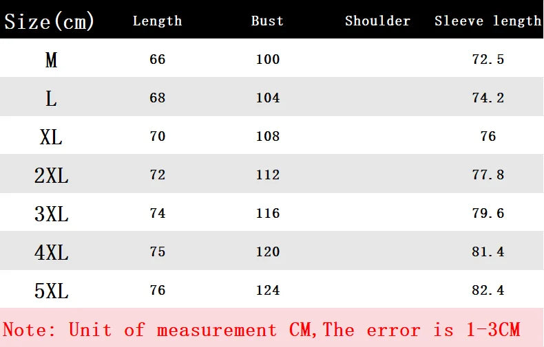M, L, XL, 2XL, 3XL, 4XL, 5XL |