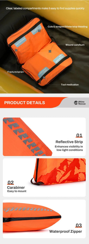 Trousse de premiers secours avec 38 configurations adapté au camping et voyage à partir de 580g "RHINO RESCUE - Outdoor Camping First Aid Kit"